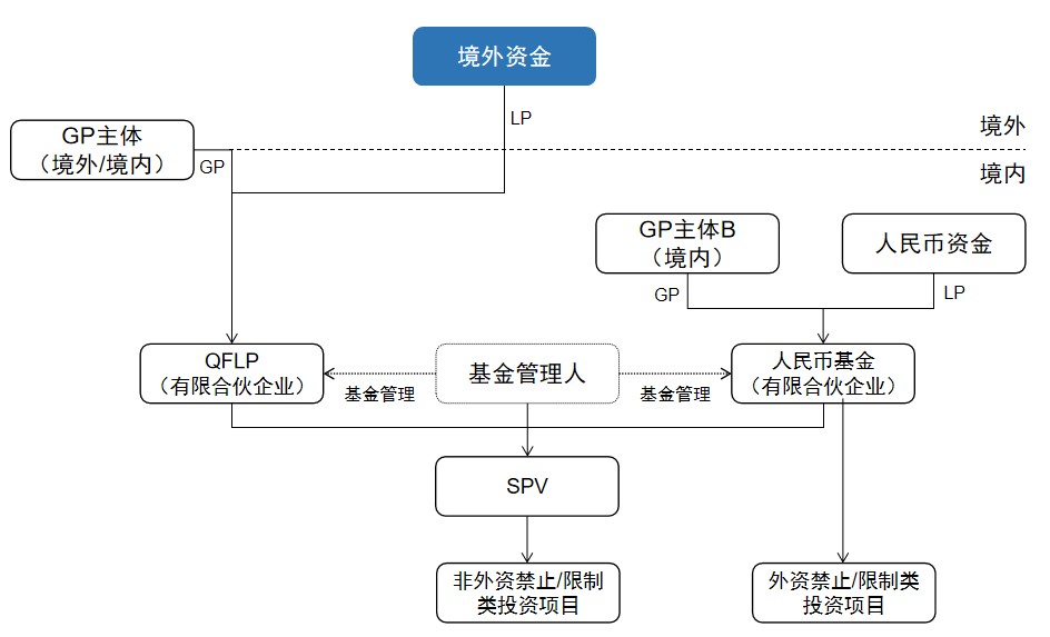 平行结构是指QFLP与在岸人民币基金并行存在、按比例或同等安排共同参与投资:对不属外资限制/禁止的行业,两者可并列出资、共享治理与收益、并以相同条款同步退出。